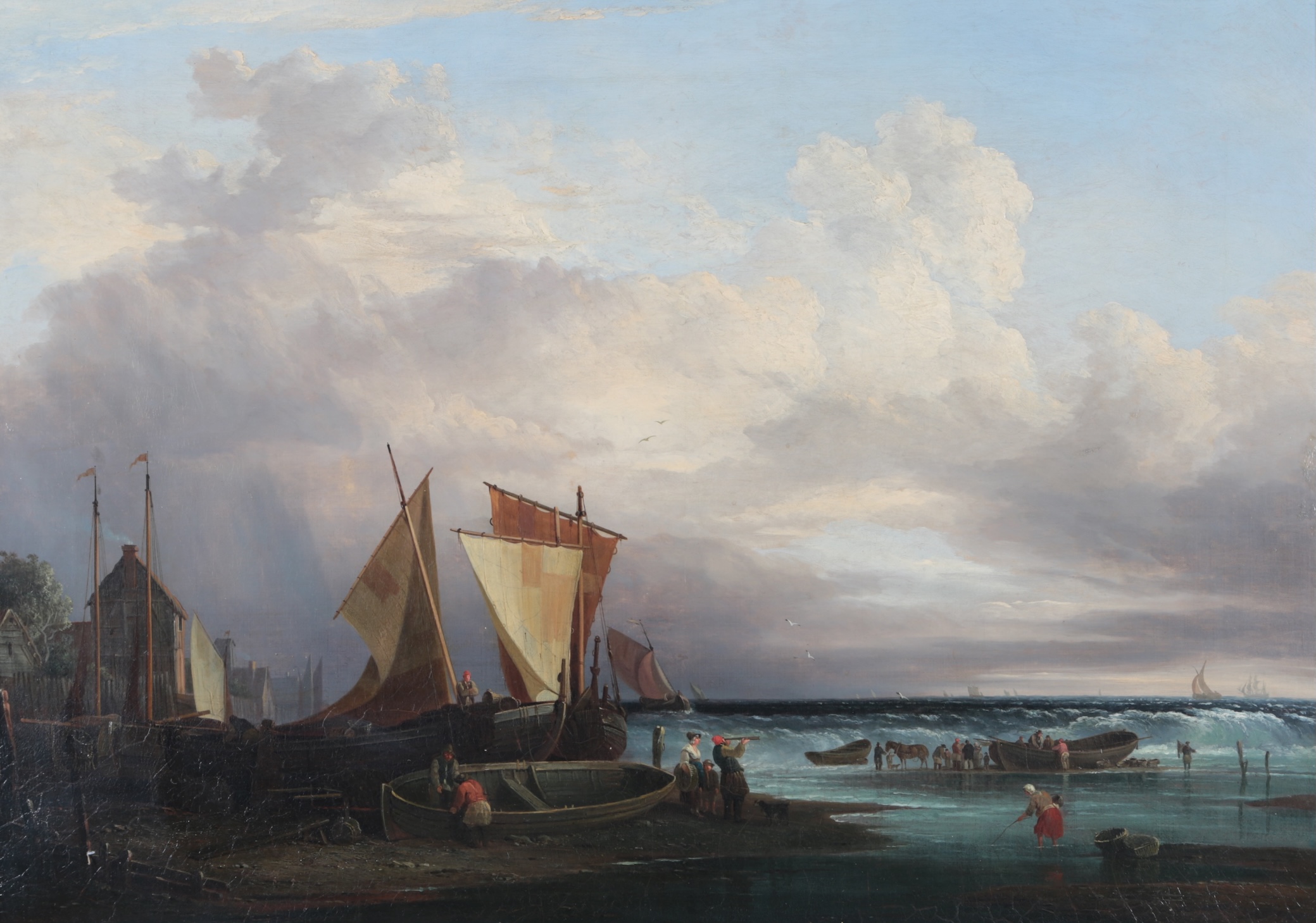 Lot 137 , Dutch School, early 19th century, Coastal view with fishing boats and figures