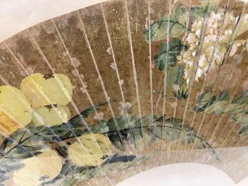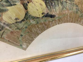 Early 20th century, Chinese School, hand painted fan, signed with character marks and red seal marks, 26 x 53cm, framed