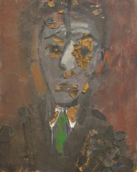 Lot 753 , Edward Wakeford (1914-1973), Self Portrait, unsigned, details verso, oil and collage on artists board, 51 x 26cm, unframed