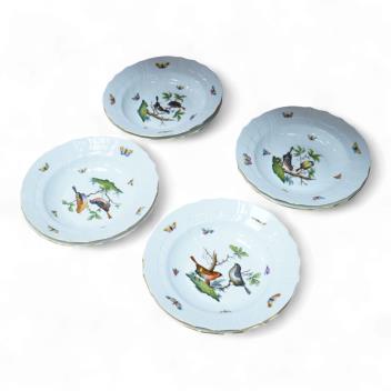 Lot 455 , Eight Herend Rothschild 'birds' soup plates, 24cm in diameter