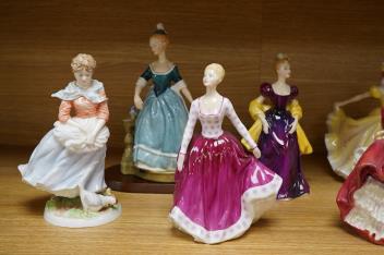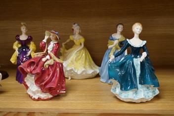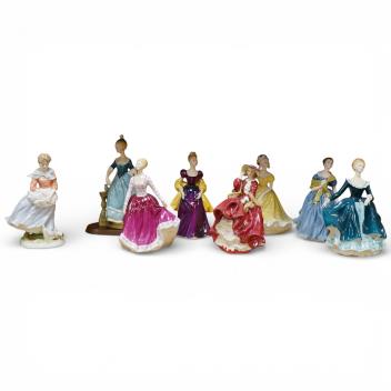 Lot 305 , Eight Royal Doulton figurines, unboxed. To include