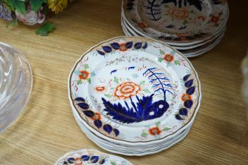 Lot 407 , Eleven Davenport Imari-pattern plates, larger 26.5cm
