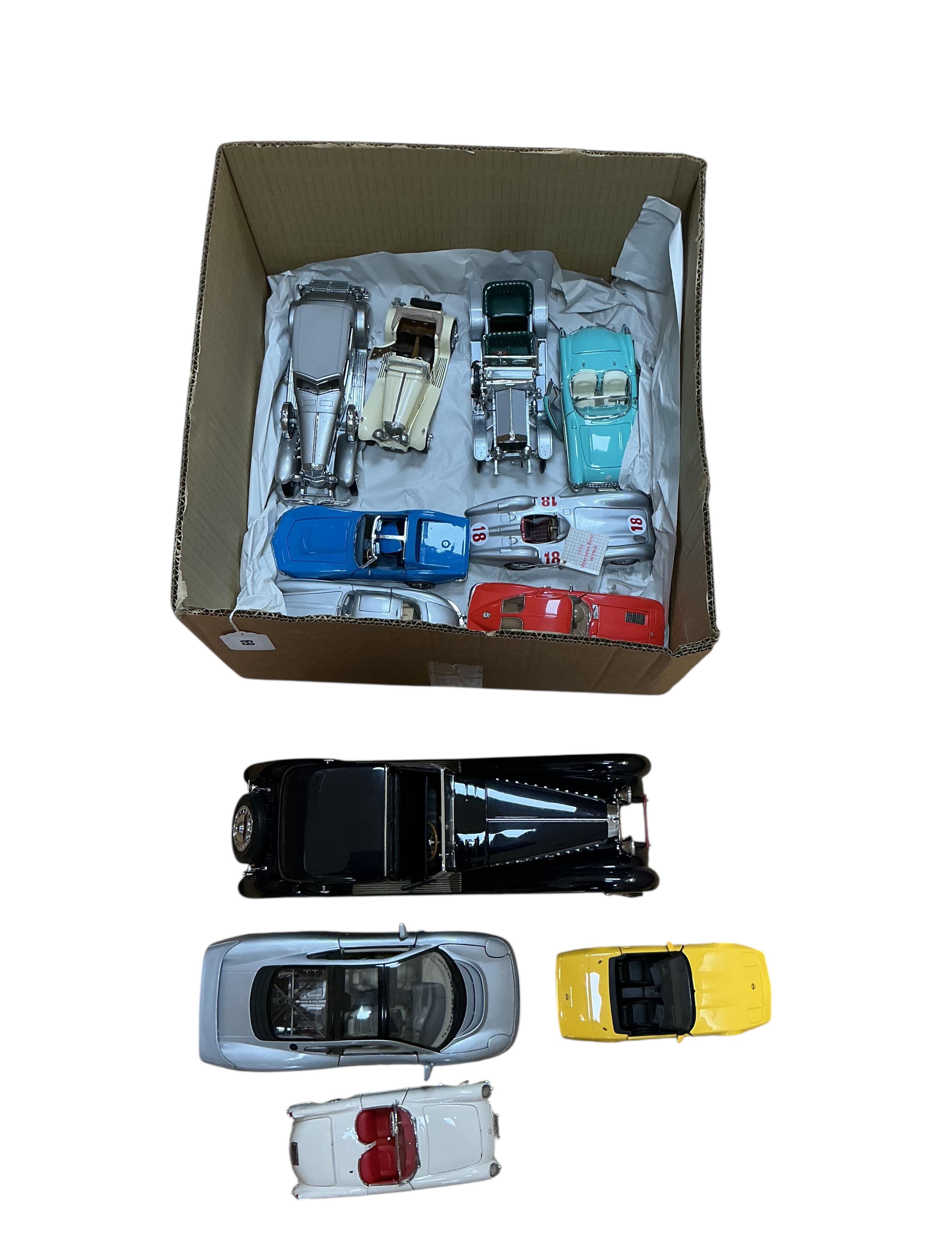 Lot 69 , Eleven unboxed Franklin Mint mainly 1:24 scale model cars, predominantly 1930s to 1960s outline cars, including a 1966 Corvette, a 1931 Bugatti Royale in a larger scale, a Mercedes-Benz 300 SL, a 1954 Mercedes-Benz W196R