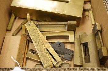 Lot 428 , Eleven various Chinese brass furniture locks, 19th/early 20th century, related latches