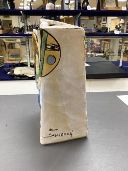Lot 3101 , Elio Schiavon (1925 / 2004) an art pottery figural vase with applied discs, height 20cm.