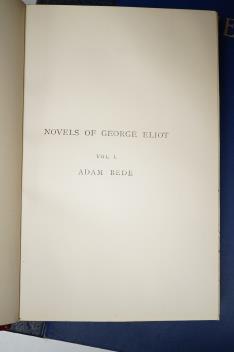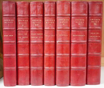 Eliot, George - Novels of George Eliot. new edition, 8 vols. (in 7). half titles; 20th cent. red half morocco and marbled boards, gilt lettered panelled spines, gilt tops and marbled e/ps., cr.8vo. Edinburgh: William Bla