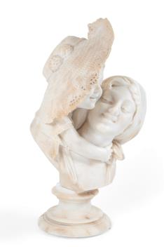 Emilio Fiaschi (1858-1941). Mother and daughter, a life size alabaster bust group, signed, on a waisted socle, 64cm high