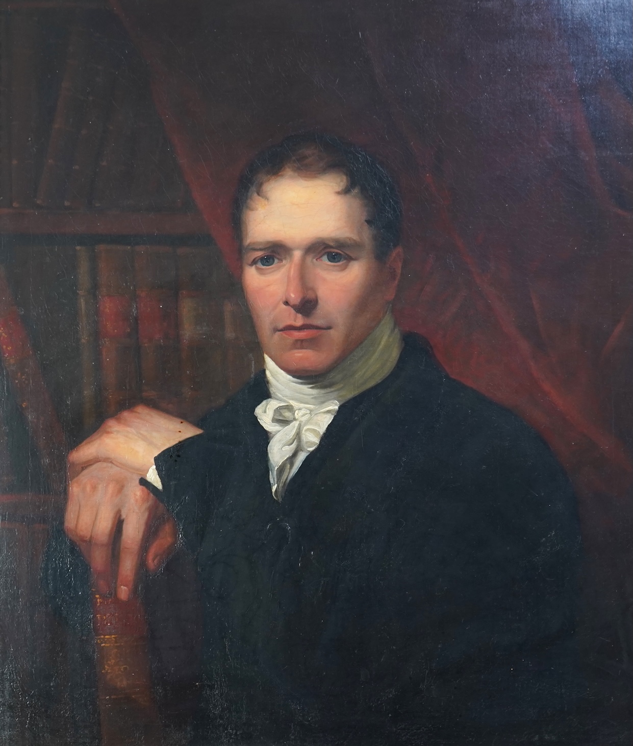 Lot 177A, English School, 19th century, A portrait of a scholarly gentleman holding a book