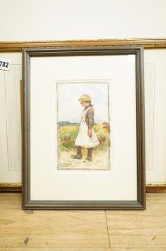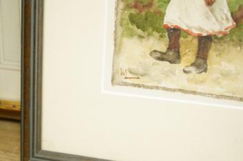 Lot 1783 , English School, Study of a young girl, monogrammed WL, watercolour, 18 x 11cm