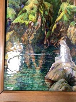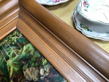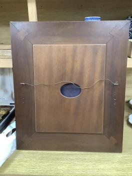 Enamel good, no damage to report; rear inscription dated 1913. Frame with several splash stains.