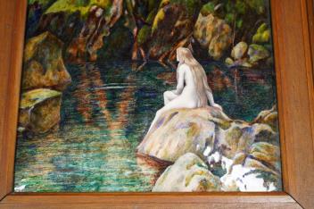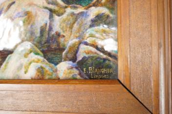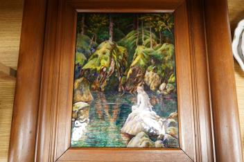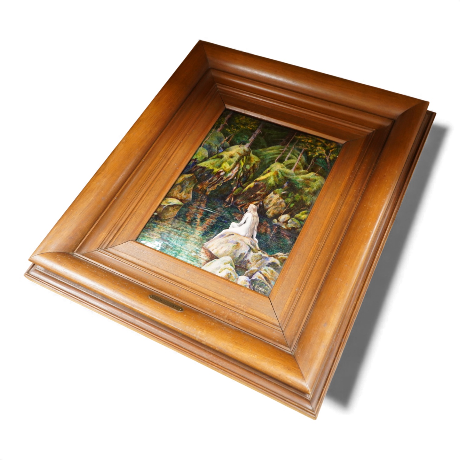 Lot 304 , Ernest Blancher (1855-1935) after Franz Hein (1863-1927), convex Limoges enamel entitled Le Lac des Nixes, inscribed verso, signed lower right, 37x28 excl. frame