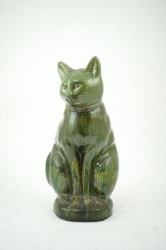 Lot 97 , Ewenny Pottery: A large green-glazed figure of a seated cat