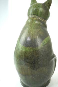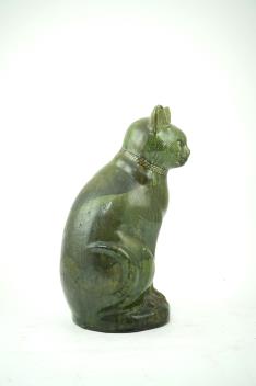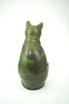 Ewenny Pottery: A large green-glazed figure of a seated cat