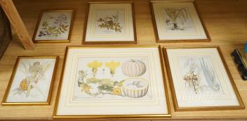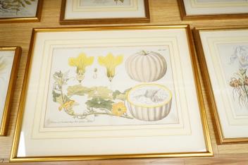 Ferdinand Bernhard Vietz (Austrian, 1772-1815), a collection of six early 19th century botanical handcoloured engravings to include ‘Peroge & Cucurbita Pepo’, ‘Bromelia Ananas’ and ‘Hemerocallis flava’, plates 11, 75, 106, 148, 356 and 556b, largest 23 x 33cm Provenance: From a private Austrian collection, brought to the UK when fleeing from Vienna shortly before the Second World War