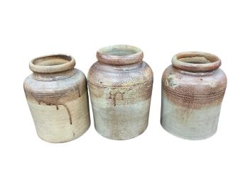 Lot 2132 , Five 19th century and later earthenware jars, largest height 32cm