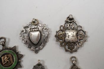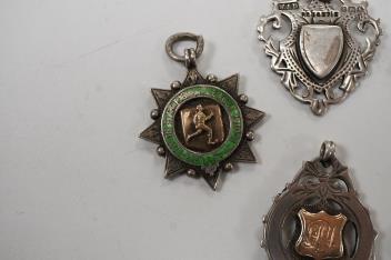 Lot 906 , Five assorted early 20th century silver medals, including enamelled 'Luton District Football League, 1910/11', diameter 28mm.