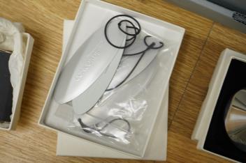Lot 390 , Five boxed British Airways Concorde branded promotional items including; a sterling silver trinket box by Links of London, a hip flask, a bottle opener, a leather credit card holder, and three unused luggage labels