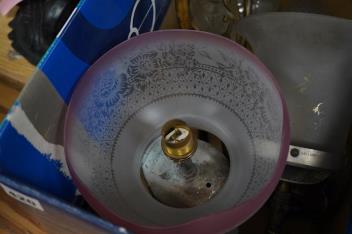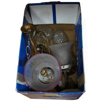 Lot 420 , Five glass wall lights to include three cut glass shades and a frosted glass etched example