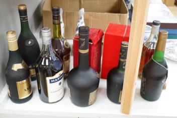 Lot 1390 , Four 1 litre bottles of cognac including Martell Cordon Bleu, Courvoisier, Martell and Remy Martin together with six smaller bottles of cognac including Martell Cordon Bleu, Camus Napoleon, Courvoisier, Napoleon, Gran Du