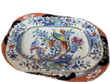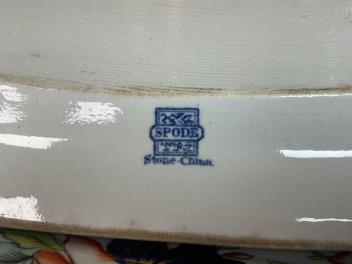 Lot 375 , Four 19th century Ironstone dishes, a Derby porcelain armorial dish, copper lustre jug, Pratware jug and three others.
