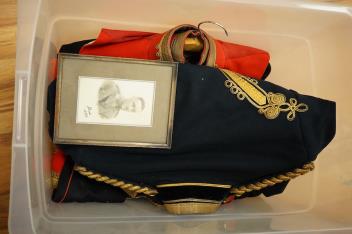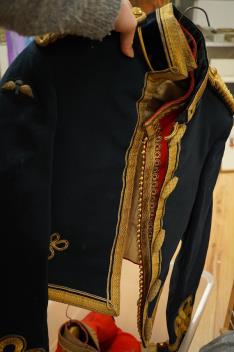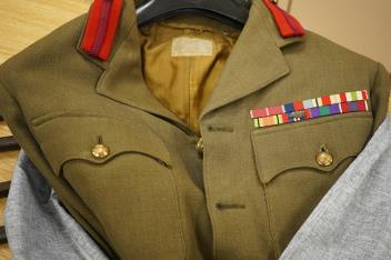 Lot 43 , Four 20th century military jackets, two waistcoats and a pair of formal trousers, relating to the Shoolbred family, including; an officer’s Service Dress Uniform jacket with applied medal ribbons manufactured by J.G. Plu