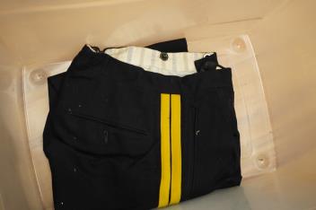Four 20th century military jackets, two waistcoats and a pair of formal trousers, relating to the Shoolbred family, including; an officer’s Service Dress Uniform jacket with applied medal ribbons manufactured by J.G. Plumb and with owner’s handwritten label for W.J. Shoolbred (Walter Shoolbred), together with another jacket with Royal Corps of Signals insignia and buttons, plus two formal mess jackets and waistcoats with gold braiding, one with a cloth parachute badge and a related pair of mess trousers