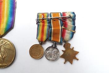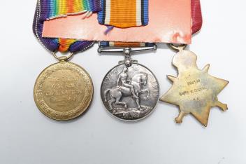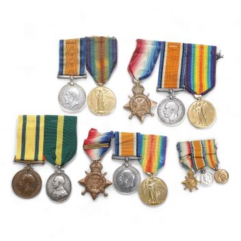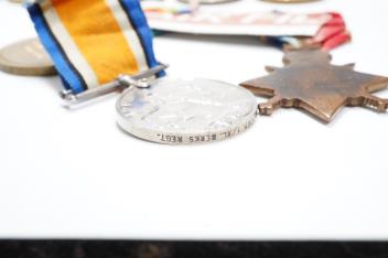 Four First World War medal groups awarded to; a trio to 9821. PTE. A. Waddup. 1/RL. BERKS. REGT., with a clasp for 5th Aug. - 22nd Nov. 1914, together with the miniature set,