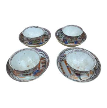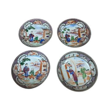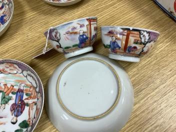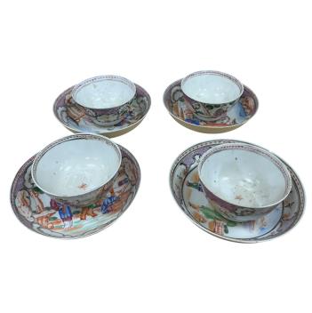 Lot 365 , Four late 18th century Chinese famille rose mandarin pattern tea bowls and saucers