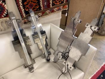 No damage seen; visually good; all with tight-fitting backplates. Working order unknown; no plugs. There are 4 pair/8 lights