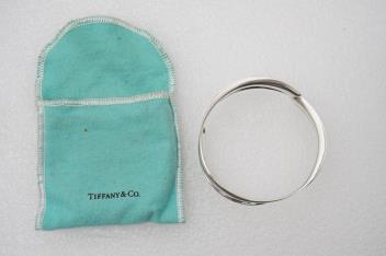 Frank Gehry for Tiffany & Co., a silver 'Fish' bangle, circa 2008, of abstract design, the bangle composed of three sinuous sections in silver, inner circumference approximately 19cm, signed Tiffany & Co. and Gehry, British hallmarks for silver, stamped T&Co, pouch stamped Tiffany & Co.
