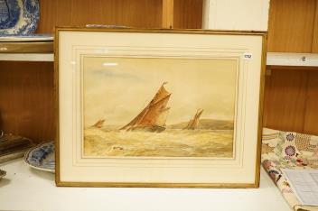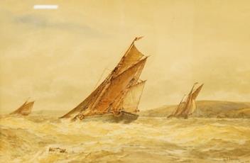 Lot 1732 , Frederick James Aldridge (1850-1933), Fishing boats in a rough sea, signed, watercolour, 35 x 53cm