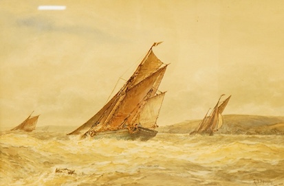 Frederick James Aldridge (1850-1933), Fishing boats in a rough sea, signed, watercolour, 35 x 53cm