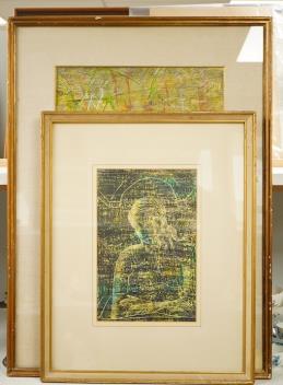 Lot 1738 , GRBN monogrammist, Surreal compositions, one inscribed Leicester Galleries 1960 and Artist of Chelsea 1964 verso, two mixed medias, largest 47 x 29cm