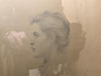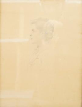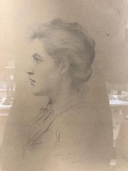 Lot 1696 , George Frederic Watts RA (1817-1904), portrait of a lady in profile, signed and dated 26th May 1889, pencil study, label and partial ink inscription verso, housed in an oak frame carved with flowers and grapevines, 39 x