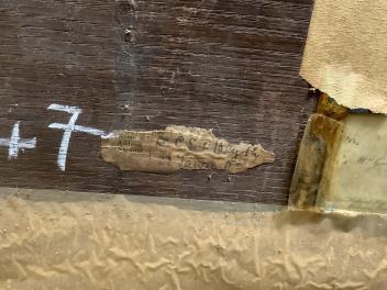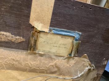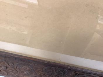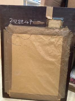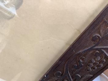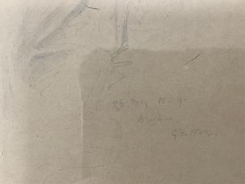 Portrait image is somewhat feint, on cream-discoloured paper with dirt spots and light creases, images 10 and 11; bottom rail of original oak frame lighter in colour than the rest. See image of GF Watts’s trade card attached verso. Signed and dated inscription appears to have the word Brighton in the middle. Provenance: offered for sale by the Shoolbred family, descendants of Jas. Shoolbred & Co., well-known furniture designers and makers based at their Tottenham Court Road department store.