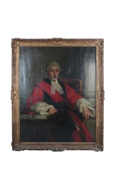 the sitter depicted three-quarter-length, seated in an interior, wearing legal robes and wig,