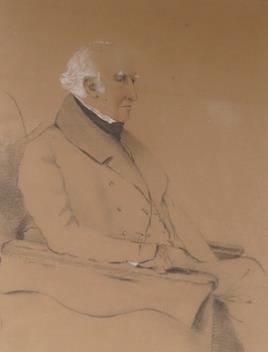 Lot 1700 , George Richmond RA (1809-1896), Portrait of Sir John Bayley, president of the MCC, label verso, charcoal heightened with white, housed in a rosewood frame, 45 x 34cm
