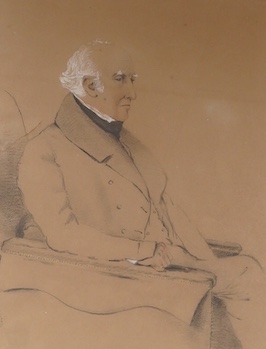 George Richmond RA (1809-1896), Portrait of Sir John Bayley, president of the MCC, label verso, charcoal heightened with white, housed in a rosewood frame, 45 x 34cm