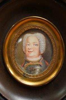 Lot 1725 , Georgian school, portrait miniature of a gentleman in armour, oval watercolour on card, framed, 2.7 x 2.3cm
