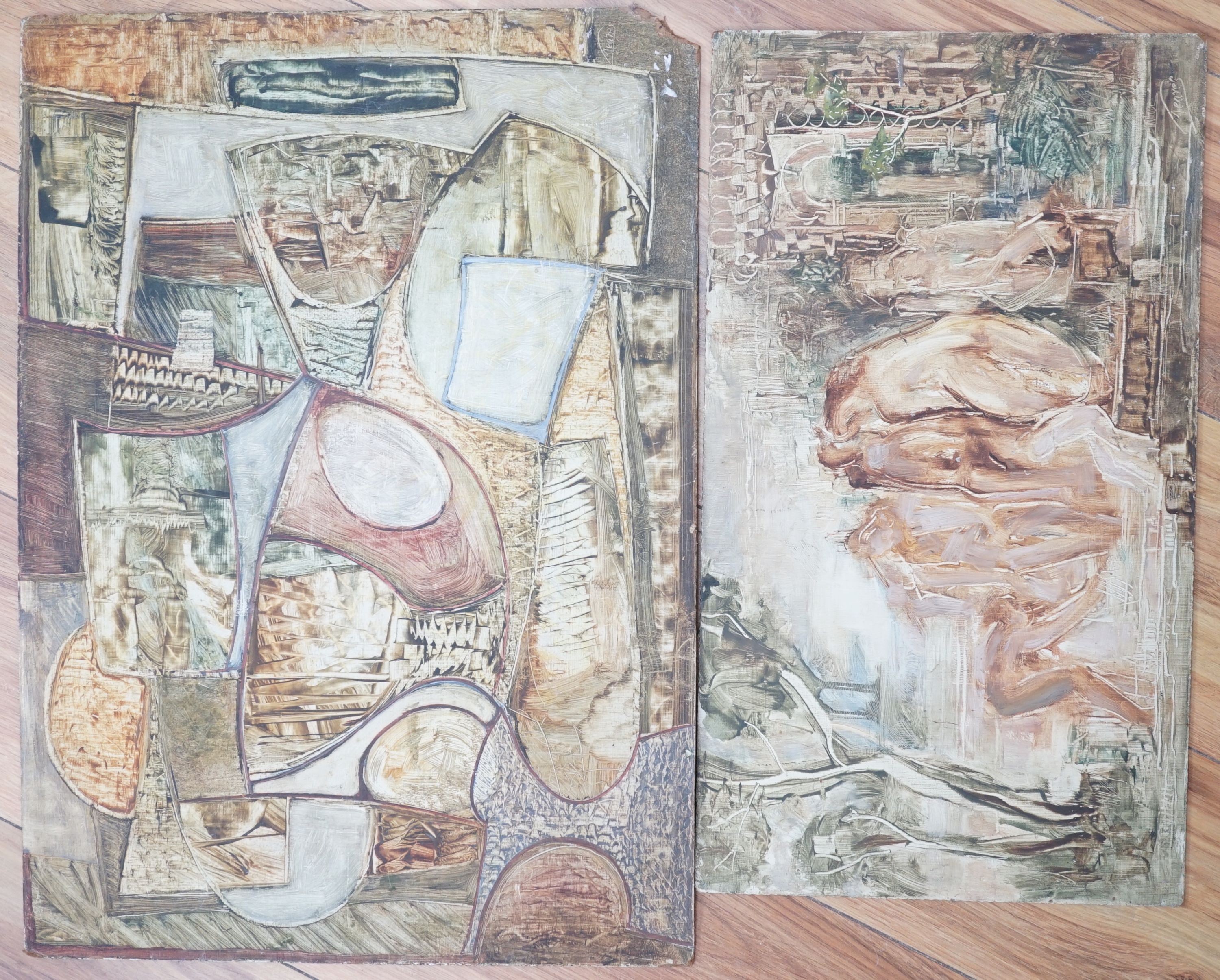 Gerald Meares, two oils on board, Bathers and Abstract form, both signed, 25 x 45cm and 36 x 51cm, unframed