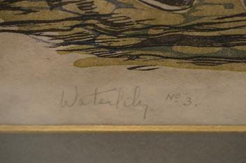 Lot 1746 , Gertrude Hemes, 'Waterlily No. 3', signed and dated 1949 in pencil, linocut, 32 x 27cm