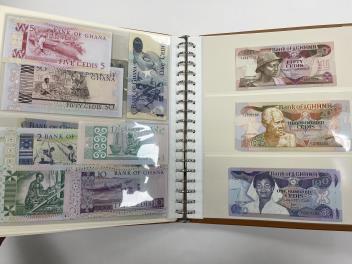 Bank of Ghana, 1976-1979, three 1 Cedi, two 2 Cedis, two 5 Cedis, two 10 Cedis, one 20 Cedis, one 50 Cedis and 1983; three 50 Cedis, three 100 Cedis and three 200 Cedis, majority UNC,
