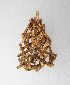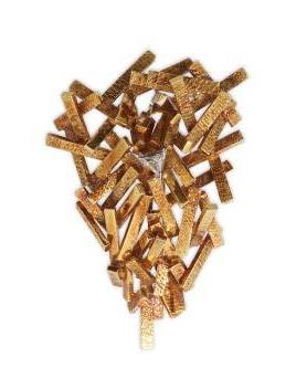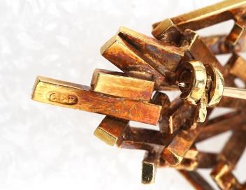 § Gillian Packard, a gold and diamond brooch, circa 1967, of abstract design, composed of textured and polished batons, centring on a triangular diamond, mounted in 18ct gold, length 4.6cm, British hallmarks, sponsor's mark GEP, gross weight approximately 15.6 grams
