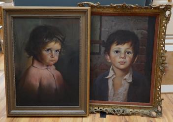Lot 748 , Giovanni Bragolin (1911-1981), a crying young boy and girl, each signed, two oils on canvas, 69 x 49cm