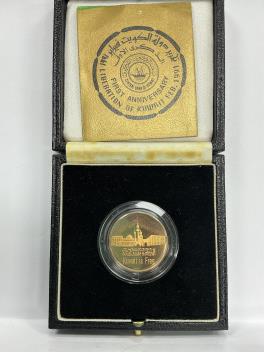 Lot 2098 , Gold coins, First Anniversary Liberation of Kuwait February 1991, commemorative gold 50 dinars, 16.96g, in case of issue with certificate