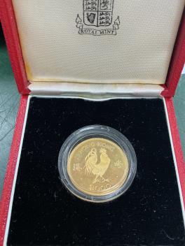Gold coins, Royal Mint, Hong Kong, proof gold $1000, cabinet wear, UNC, in case of issue