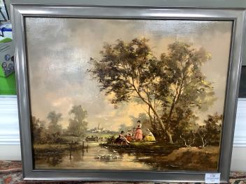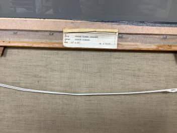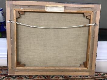 Age of painting circa 2000; bright reflective finish in good condition. Frame good.