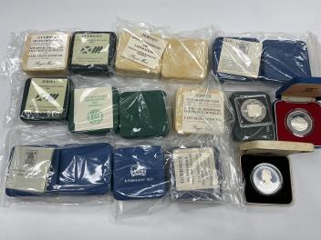 Guernsey silver wedding 25p, 1972, silver Jubilee 25p, 1977 x 2, Royal visit 25p,1978 x 2, Queen Mother’s 80th birthday 25p, 1980, Royal Wedding 25p, 1981, 40th anniversary of liberation £2 1985 x 2, Commonwealth games £2 1986 and 900th anniversary £2, 1987,