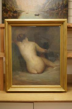 Lot 742 , Hermann Delpech (French, 1864-1945), Nude study, signed lower left, pastels, gilt framed, 70 x 58cm