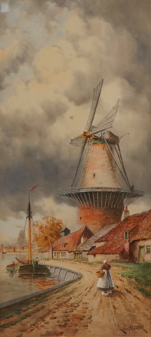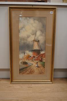 Hermanus II Koekkoek (Louis Van Staaten, Dutch 1836-1909), 'Papendrecht', signed, watercolour, 64 x 29cm